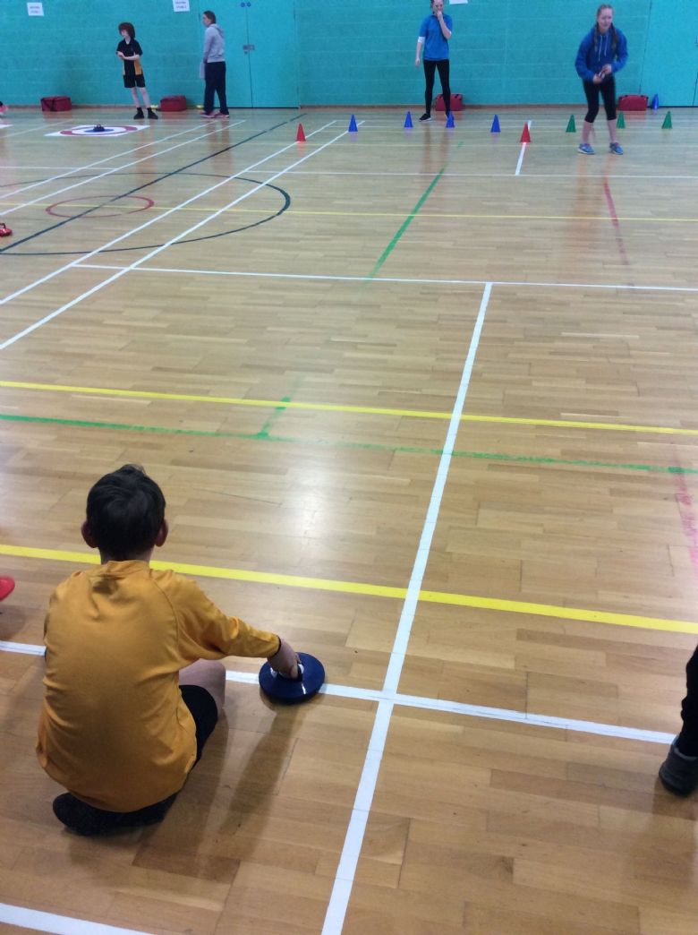 The final activity was 'Team Kurling' and this is the only activity that the children had practised before the event. The children needed to work together to get as many of their stones closest to the centre than the opposing team. One point was awarded for every stone closest to the centre than the other pair.