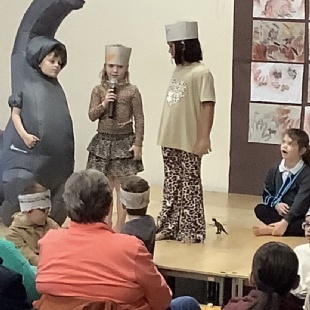 Our amazing Year 1/2 children took us on a time-travelling adventure back to the Stone Age, wowing the audience with their fantastic knowledge, catchy songs and brilliant artwork! From mammoth hunters to archaeologists, they brought prehistoric life to the stage and made us all incredibly proud. The cheesy jokes were pre-hysterical  -  and just to confirm, there were absolutely no dinosaurs in this play.....or the Stone Age for that matter!